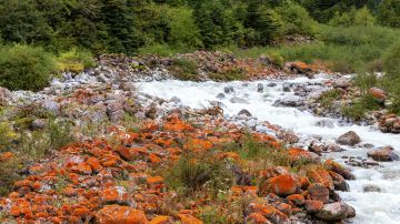 红石滩位于四川省海螺沟景区雅家埂两河口地带。有世界的红石公园之称。由于海螺沟独特的潮湿滋润气候,这里的石头上布满的红色物质,在高山特有的生态环境内得以繁衍,形成奇特的景观。