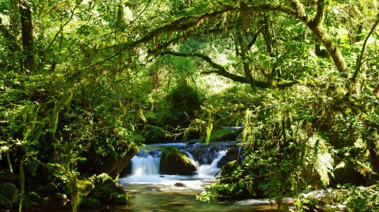 水上森林是荔波小七孔的一个知名景观,是属于罕见的岩溶地貌水上森林区。这里的千百株树木,包括珍奇树木数十种,全都植根于水中的顽石上,又透过顽石扎根于河床,造就了这幅水中有石,石上有树,树植水中,水、石、树相偎相依的奇景。