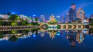 甲秀楼是贵阳的标志性建筑,始建于明代,坐落于市区内南明河中的一块巨石上,是一座三层的木质阁楼。楼旁边有浮玉桥和翠微园可以一起游览。登上甲秀楼,可以俯瞰南明河岸风光,景色不错。这里是市中区域,周围商店、餐饮店都很多,晚上还要很多夜市,非常热闹。