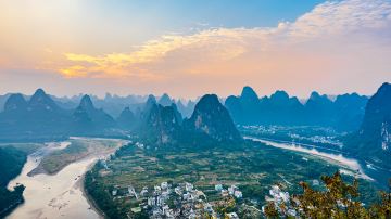 黄布倒影是漓江精华中的精华,也是20元人民币的背面景色。位于漓江精华段兴坪古镇境内,船行其中,江面开阔,水平如镜,青峰倒影,非常美丽。拿出一张20元的人民币与其合影,可以说是件非常有仪式感的事情。游人可以乘船游览,也可以在兴坪古镇内步行远观。