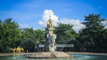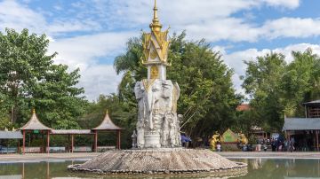 泼水广场位于西双版纳傣族园内,泼水节是傣族人一年一度的传统节日。在泼水广场可以欣赏这一热闹的节日,你也可以亲自参与进去,来一次刺激的泼水大战。