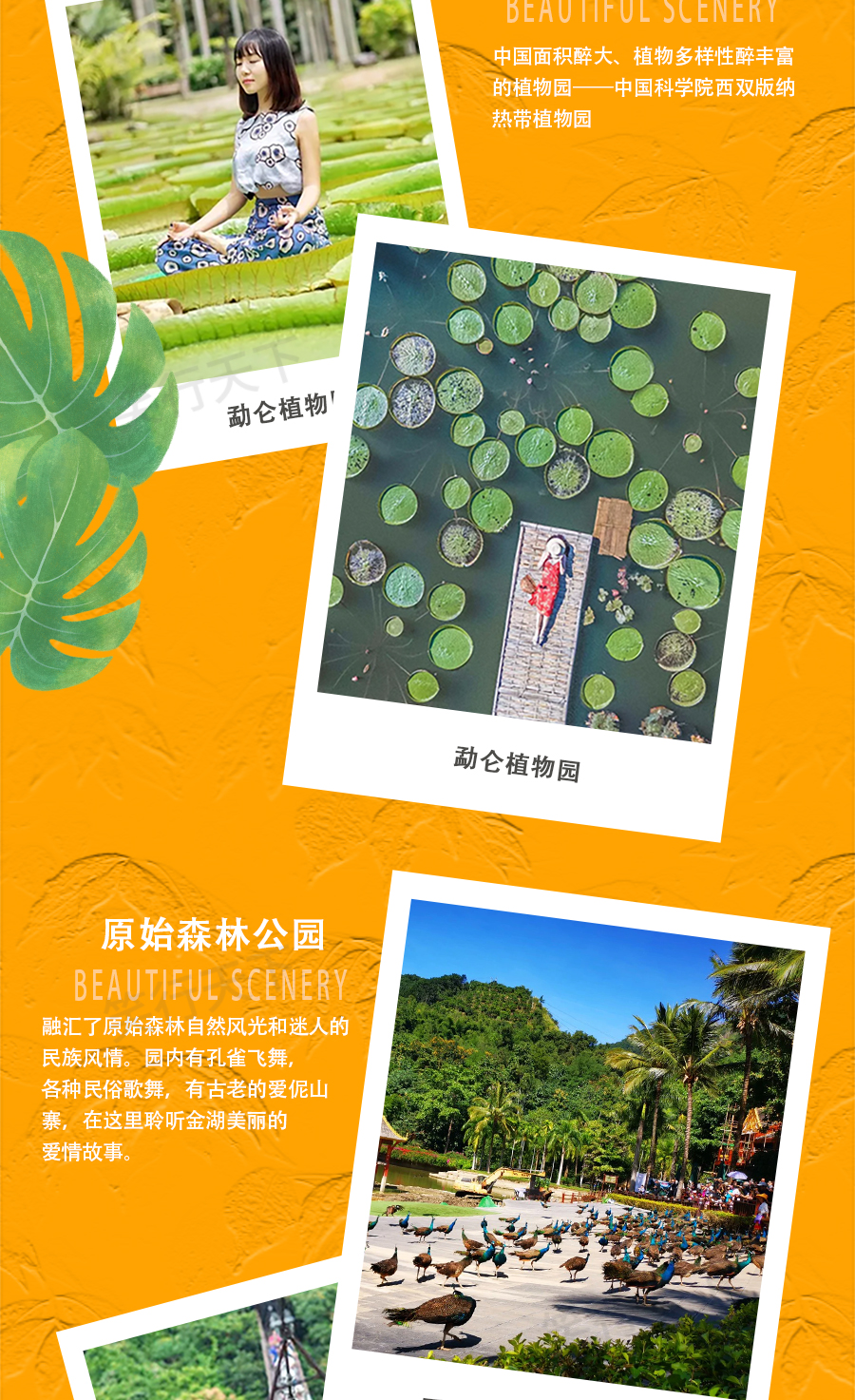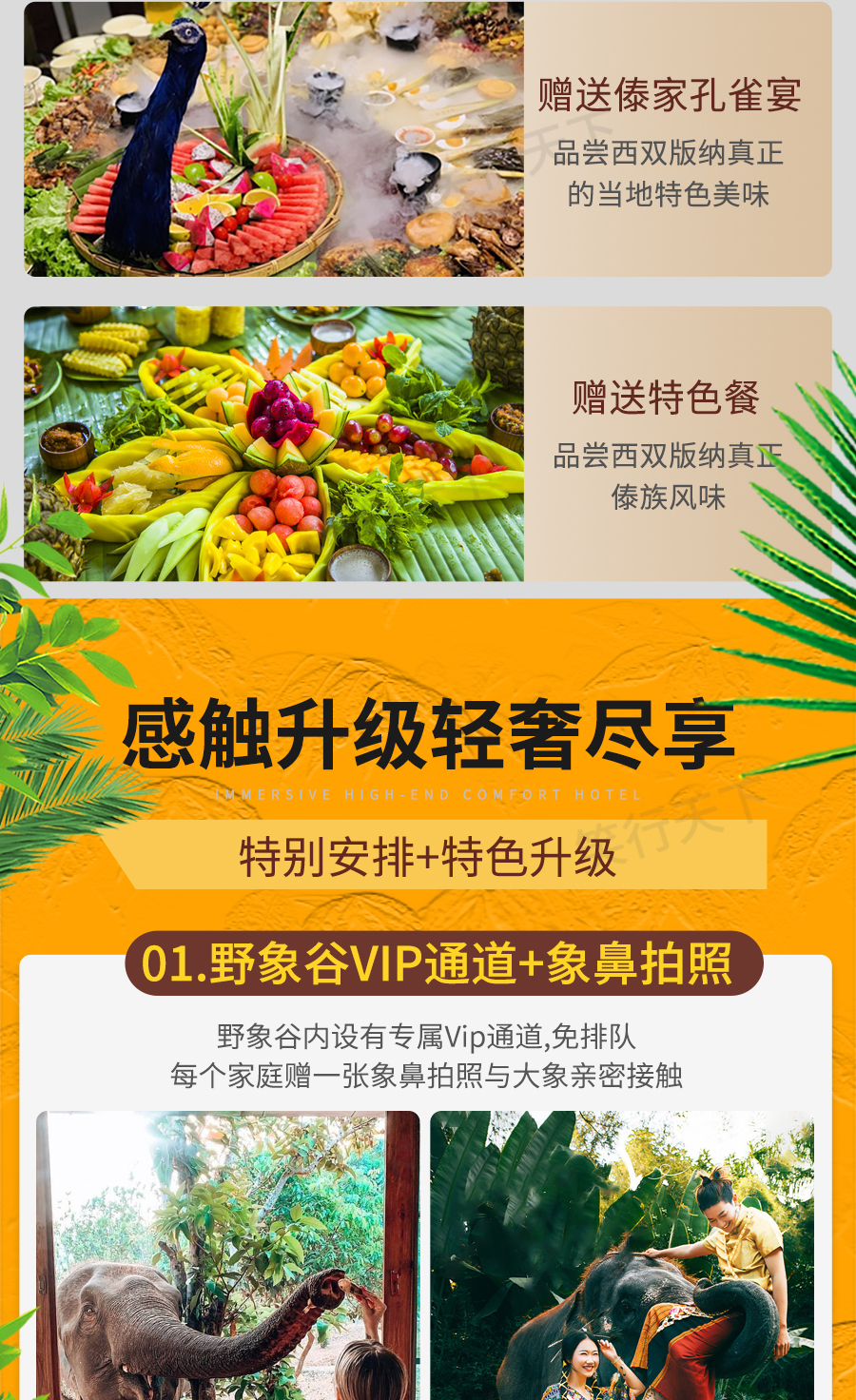 度假首选:天然森林氧吧,5A勐仑植物园,野象谷,原始森林公园,傣族园泼水盛典礼遇,夜游告庄夜市,亲子蜜月爸妈放心游必选;赠惊喜旅行福袋,网红告庄歌舞伴餐;