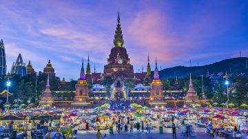 抵达告庄西双景, 步行前往沿途欣赏湄公河畔的迷人美景,欣赏告知星空夜市【推荐行程,行程中不含,无导游、需要您自行游览,中途如产生费用需自愿选择,如果不想去就回酒店休息、注意安全哦】
