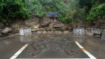 怀胎井,位于热海澡塘河右岸上,出水温度88℃,在12方石栏上刻有12生肖图案,其水富含多种微量元素及水氡,这里并排的两井温泉可以饮用。怀胎井所处的环境很宜人,蒸气腾腾,烟雾缠绕,富有山村自然特色,让人赏心悦目。
