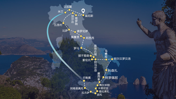 行程中所列景点/场馆首道大门票罗马斗兽场首道大门票(或圣天使堡)、米兰大教堂入内含登顶、内陆机票、庞贝古城、威尼斯船票、佛罗伦萨旧宫、巴勒莫大教堂、陶尔米纳古剧院、五渔村火车