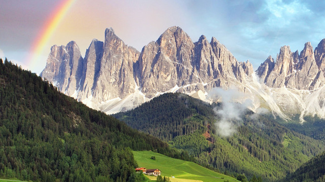 富内斯山谷一个东西向的山谷,抬头就能看到意大利美丽的雪山,一眼望去,满满是地毯一样的草原,绿草如茵,山花遍地,树木茂密,坐落在盖斯勒峰脚下深邃绵长的富内斯山谷,被誉为“南蒂罗尔珍珠”。山间教堂点缀其间,牛羊成群的牧场加之精雕细琢的德系小镇仿似世外桃源 。