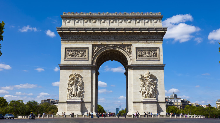 【凯旋门】(外观):修建于拿破仑一世统治时期,是为了纪念拿破仑在1806年在奥斯特尔里茨战役中获胜而建的。