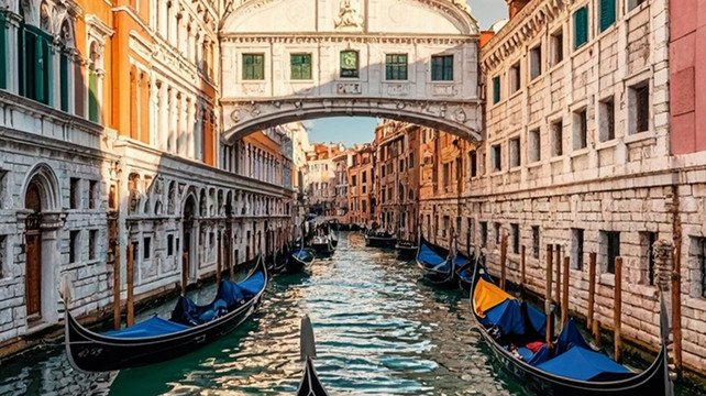 乘车前往世界闻名的“水都”—威尼斯,位于意大利东北部,是亚得里亚海威尼斯湾西北岸重要港口,主建于离岸4公里的海边浅水滩上,由118个小岛组成,400多座桥梁连成一体,以舟相通,有“水上都市”、“百岛城”、“桥城”之称。