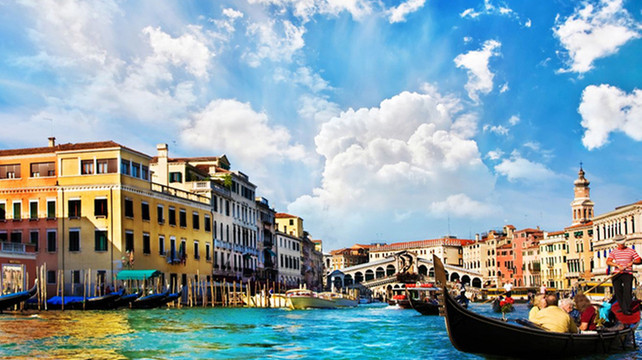 上午出发前往水城威尼斯,到达后参观圣马可大教堂,圣马可广场,叹息桥,华丽的总督宫,这些建造在水上的美丽建筑和蜿蜒的水巷一起,让威尼斯的浪漫风情久久挥之不去。前往亚托桥畔威尼斯T广场,这里的德国商馆店,是意大利时尚购物的商业中心。