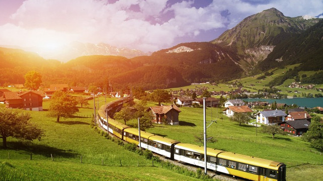 体验可以欣赏瑞士山水景致的金色山口快车*(含车票),乘车前往瑞士度假胜地-因特拉肯。(金色山口快车时间依实际预定为准)
