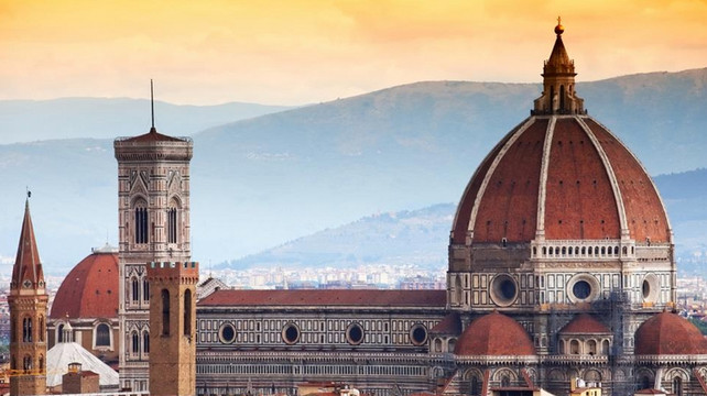 游览佛罗伦萨(约 40 分钟),橘红色圆顶的圣母百花大教堂(外观) 是佛罗伦萨重要的地标,由教堂、洗礼堂、钟楼组成,洗礼堂的正门由于大师米开朗基罗的赞誉而得到“天堂之门”的美誉。市政厅广场(外观)(又名:君主广场和西尼奥列广场),这里有一座建于十三世纪的碉堡式旧宫(外观)(现为市政厅),侧翼的走廊,现在连同整个广场成为了一座露天雕塑博物馆,各种石雕和铜像作品栩栩如生,形象传神,如人们所熟悉的米开朗琪罗的《大卫像》复制品……